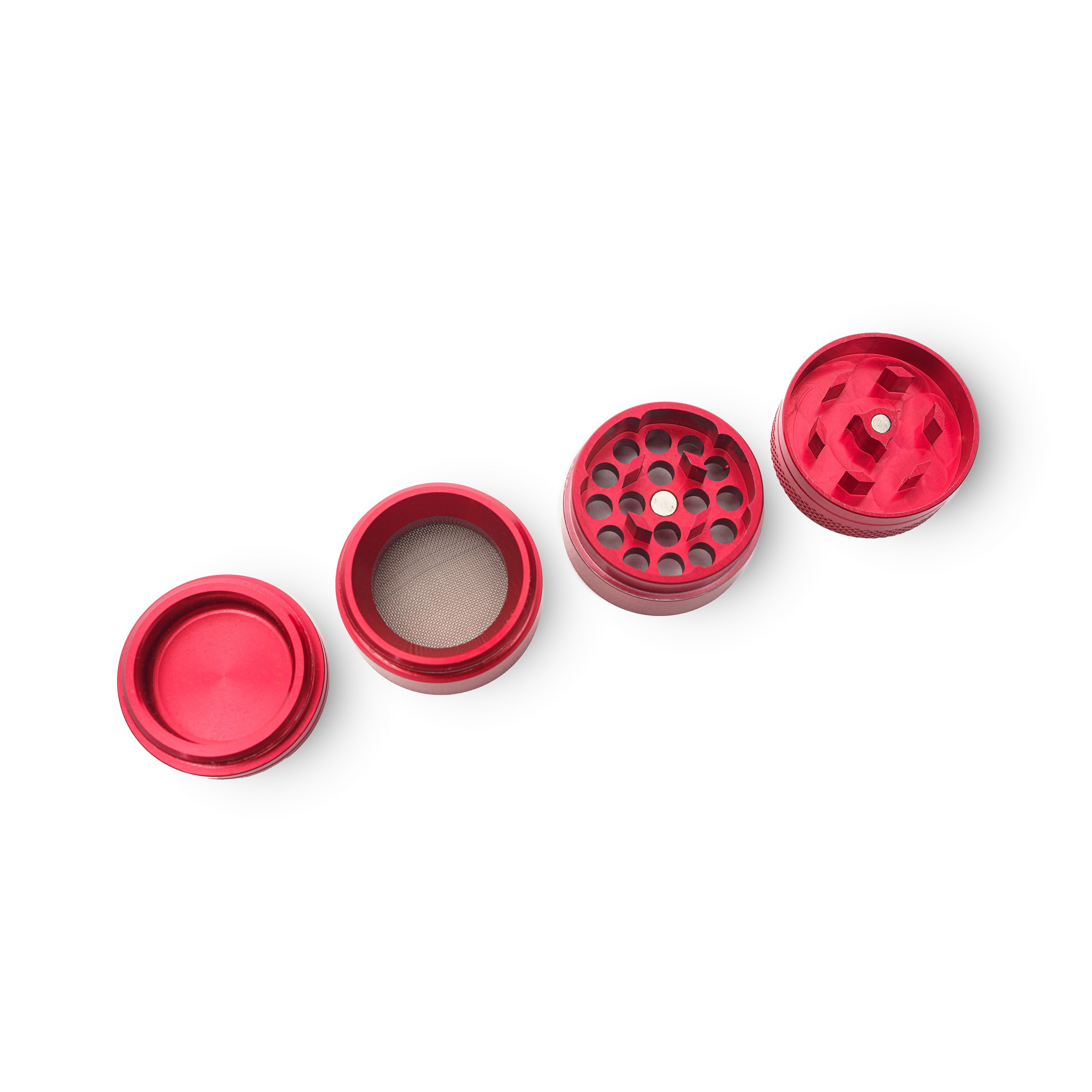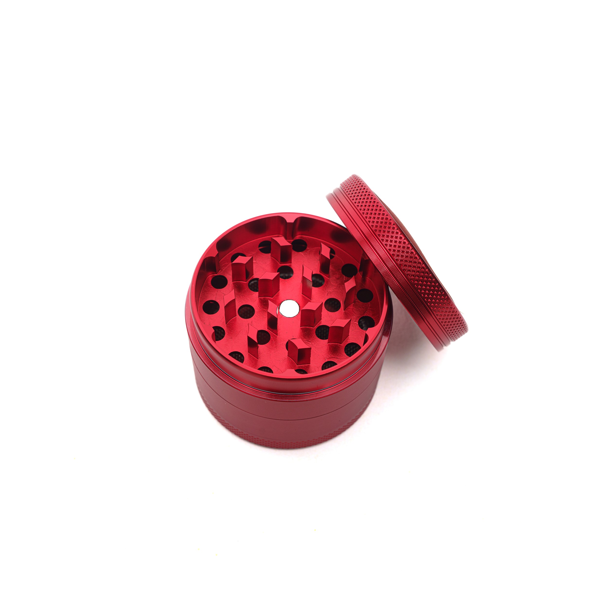Der Black Leaf Aluminium Grinder in auffälligem Rot vereint elegantes Design mit Funktionalität.