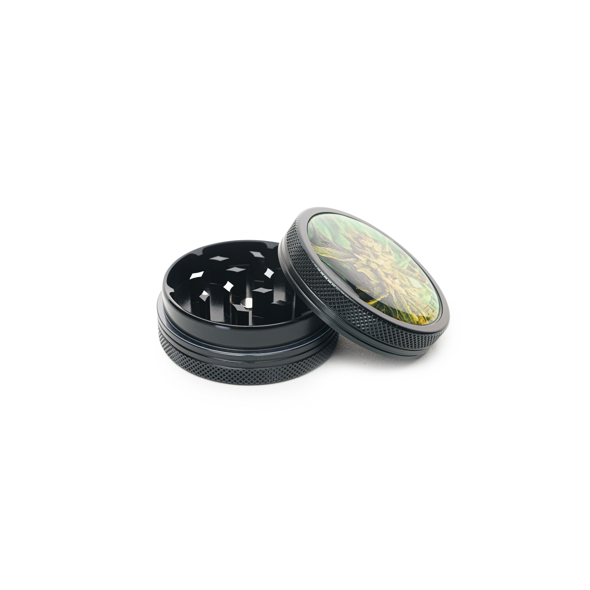 Mach’s dir einfach, gönn dir Qualität – die Black Leaf Mühle 2-tlg. ist dein treuer Begleiter für jeden Joint oder jede Bong-Session.