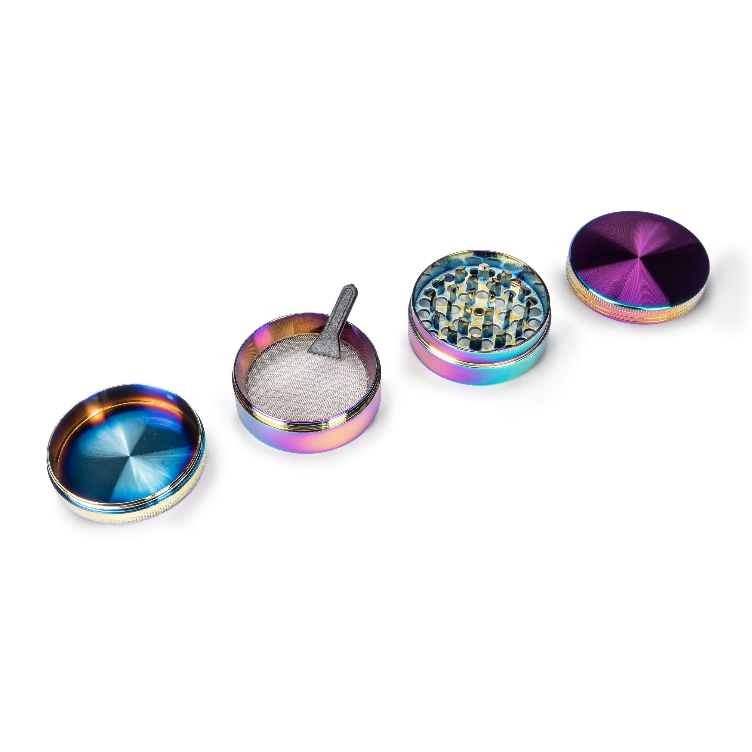 - Farbe: Schimmernde Ölfarben, die jedem Grinder ein individuelles Finish verleihen