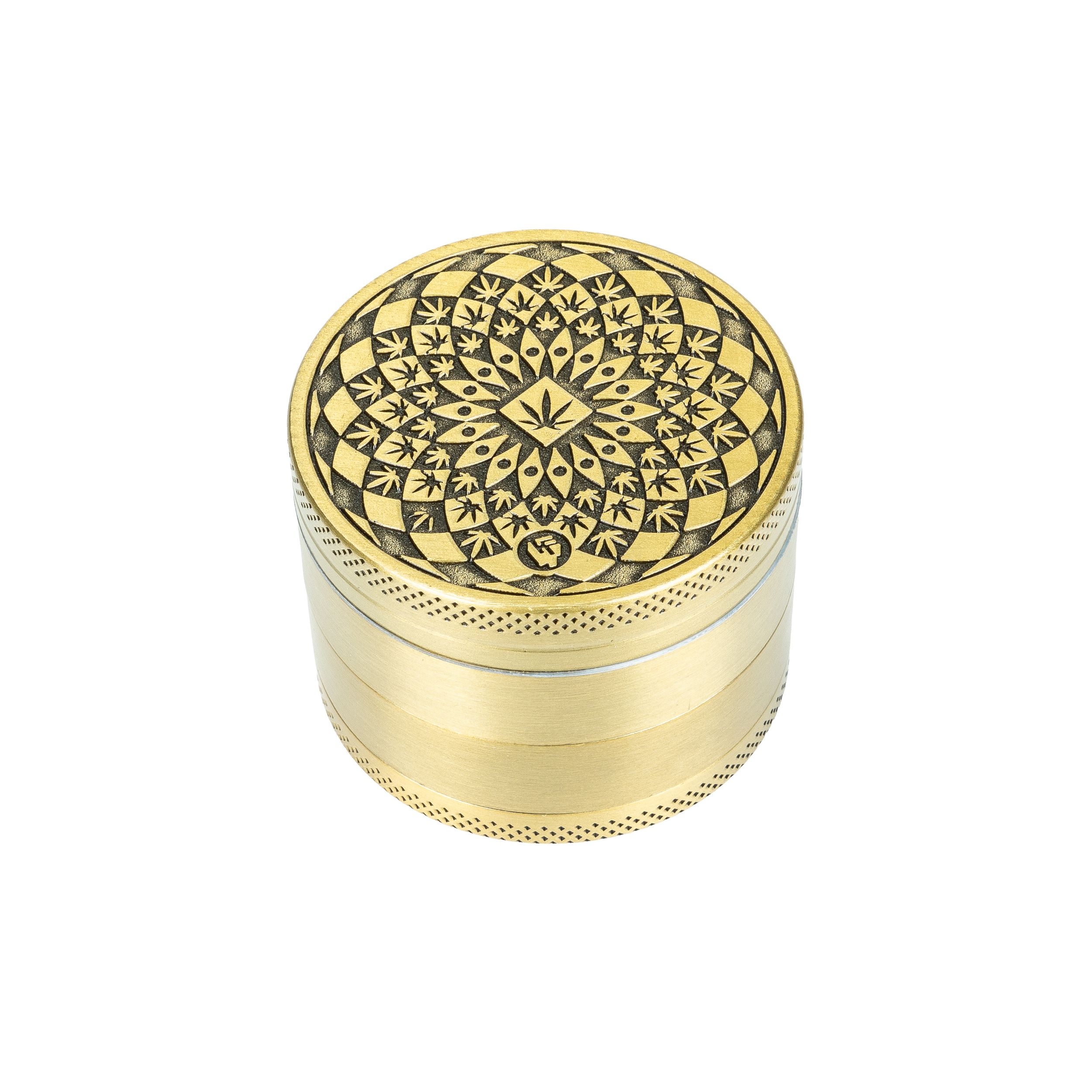 Metall Grinder, LEAF PATTERN GOLD, 50mmØ, 4-teilig