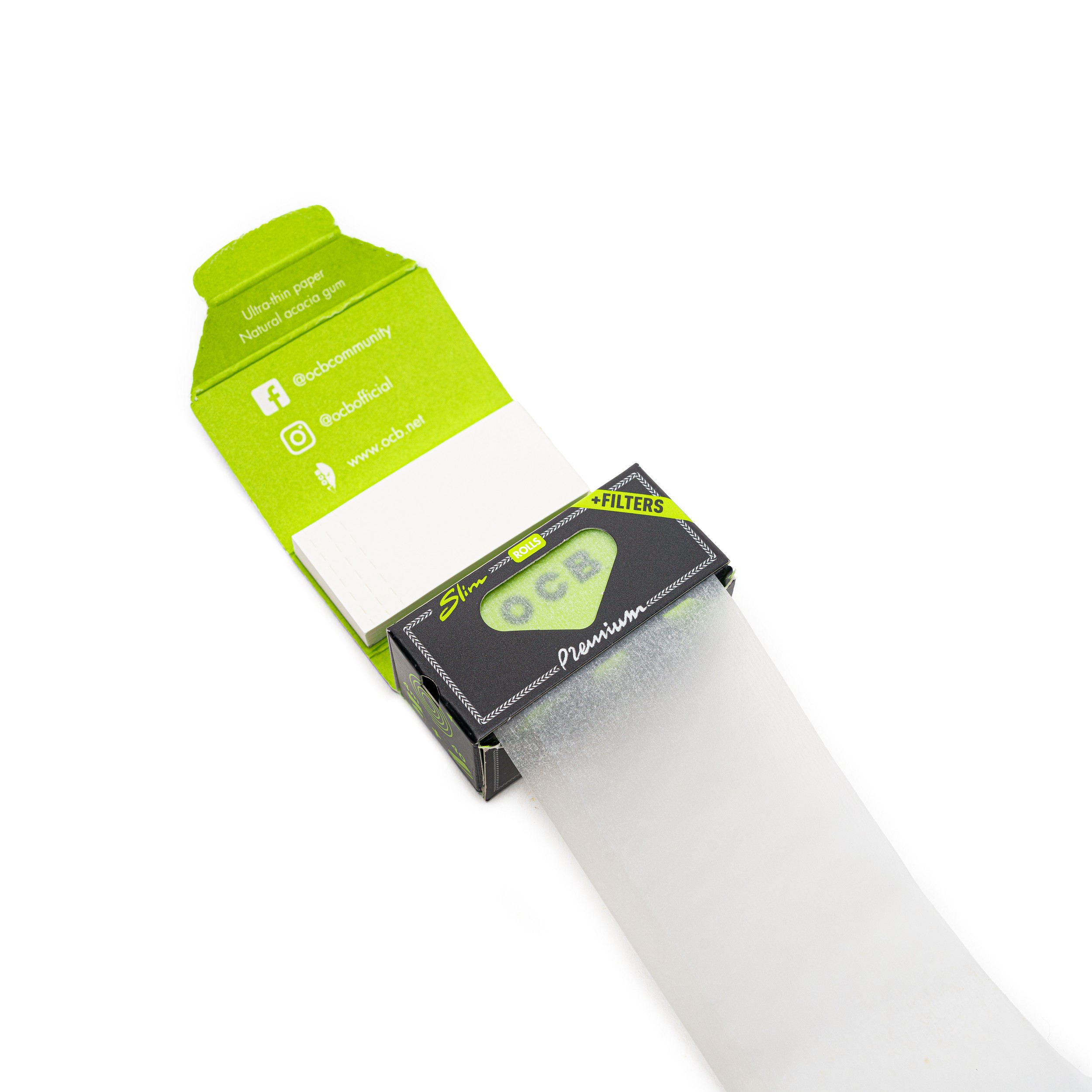 Die OCB Premium Slim Rolls werden aus 100% nachhaltigen Waldfasern hergestellt und sind mit natürlichem Akaziengummi versehen, was sie zu einer umweltfreundlichen Option macht.